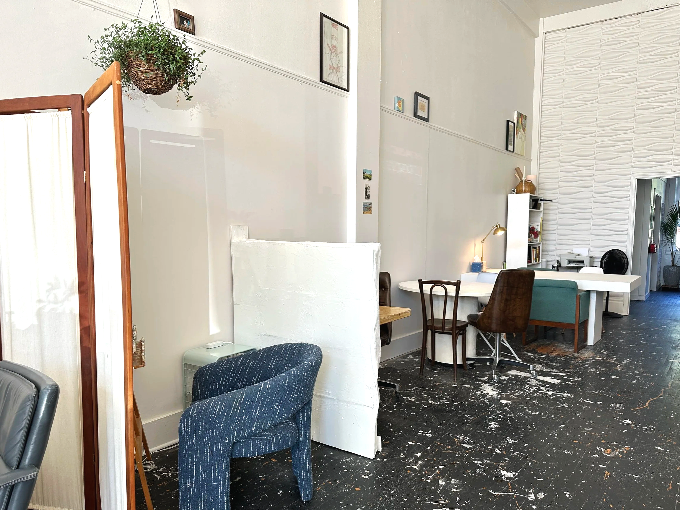 Our vision is to create a cozy, approachable artist sanctuary that functions like a co-working space, including all of the amenities of a regular co-working space but with a few artistic extras: